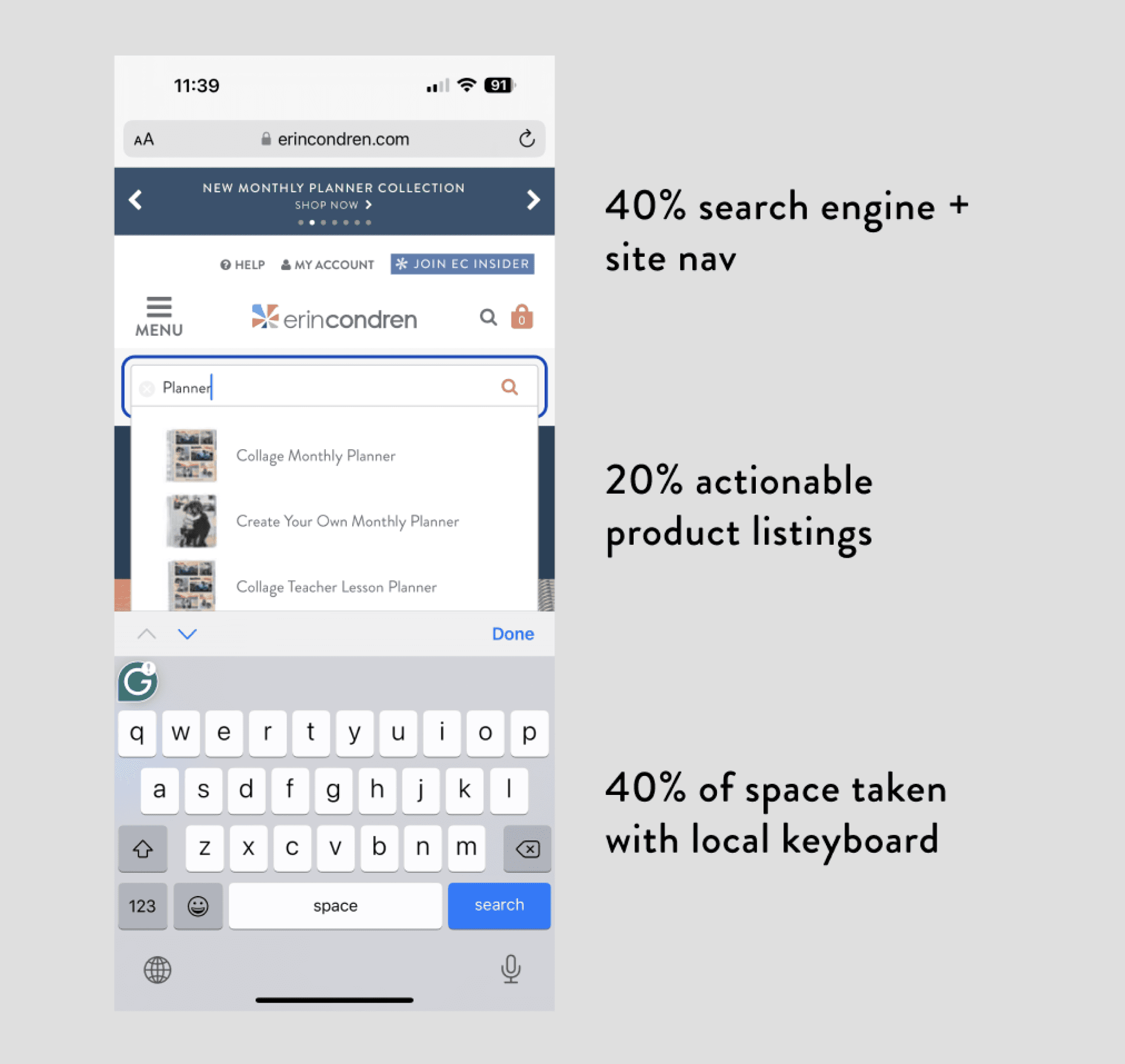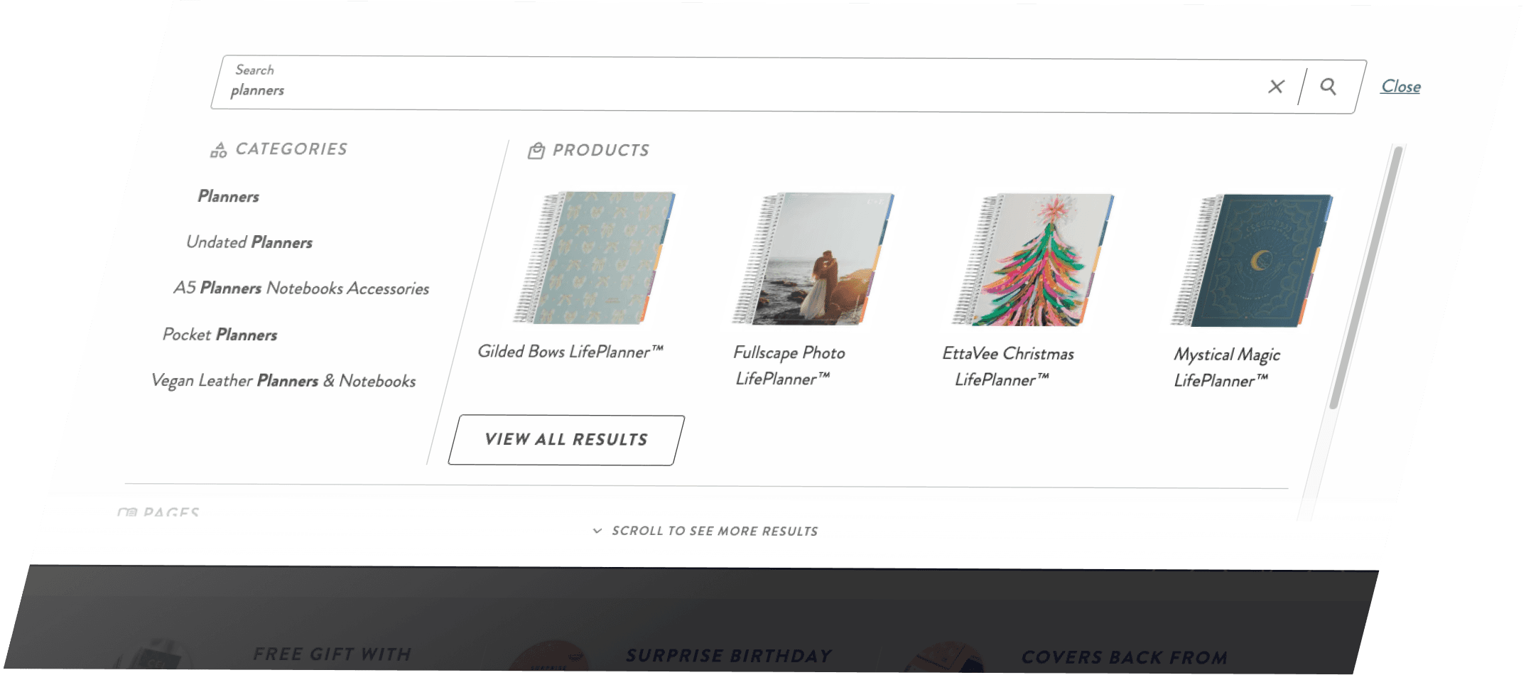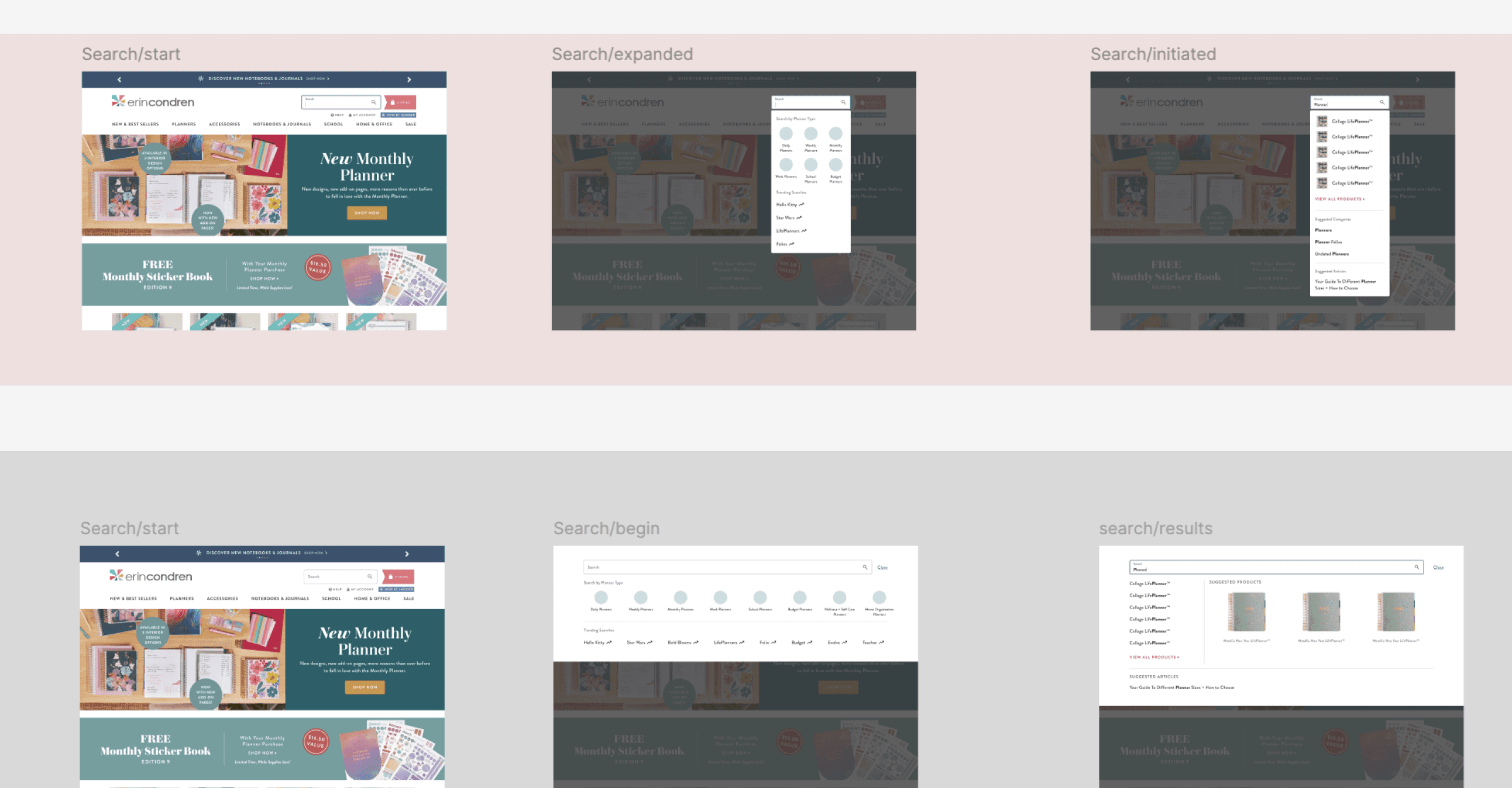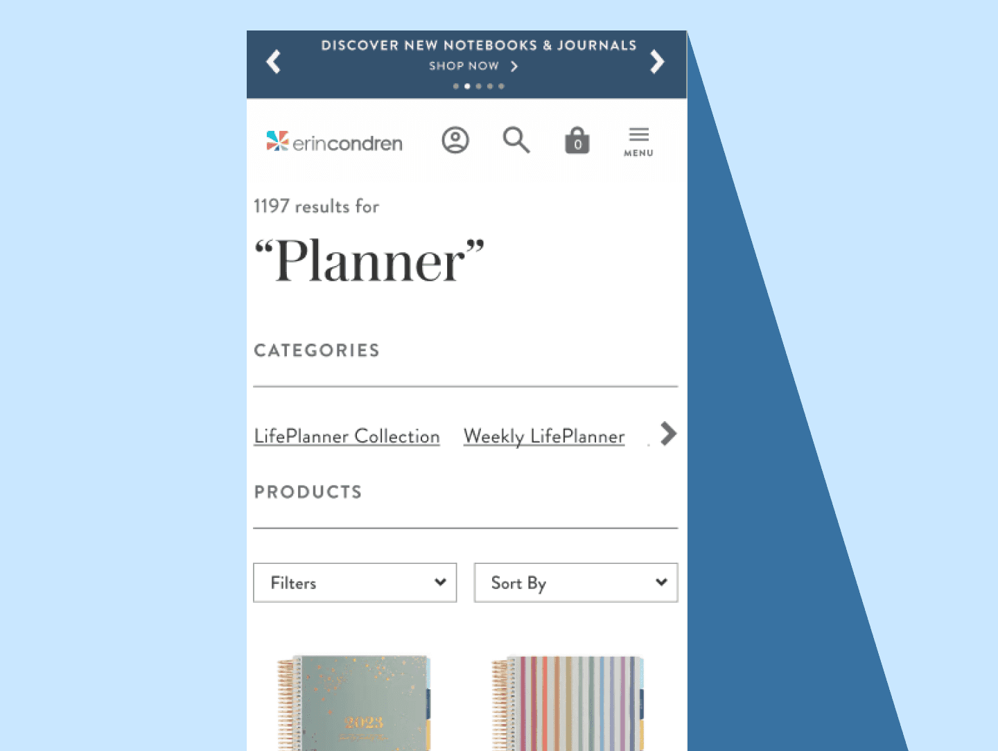 I served as the Lead Designer on the project, outlining key needs to leadership, gathering consensus on scope and iterating on solutions anchored in user research findings. I conducted two moderated usability tests with those in the target market for Erin Condren’s products to drill down on features that were most impactful to the specific demographic of shoppers. In the end, I was able to do the following: