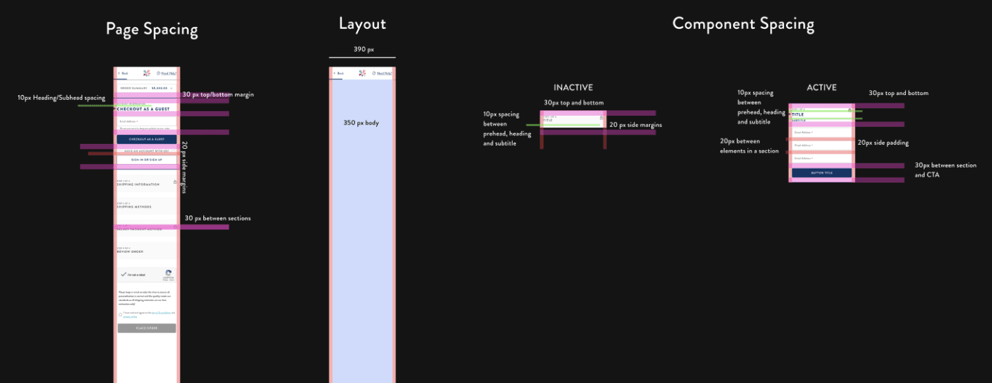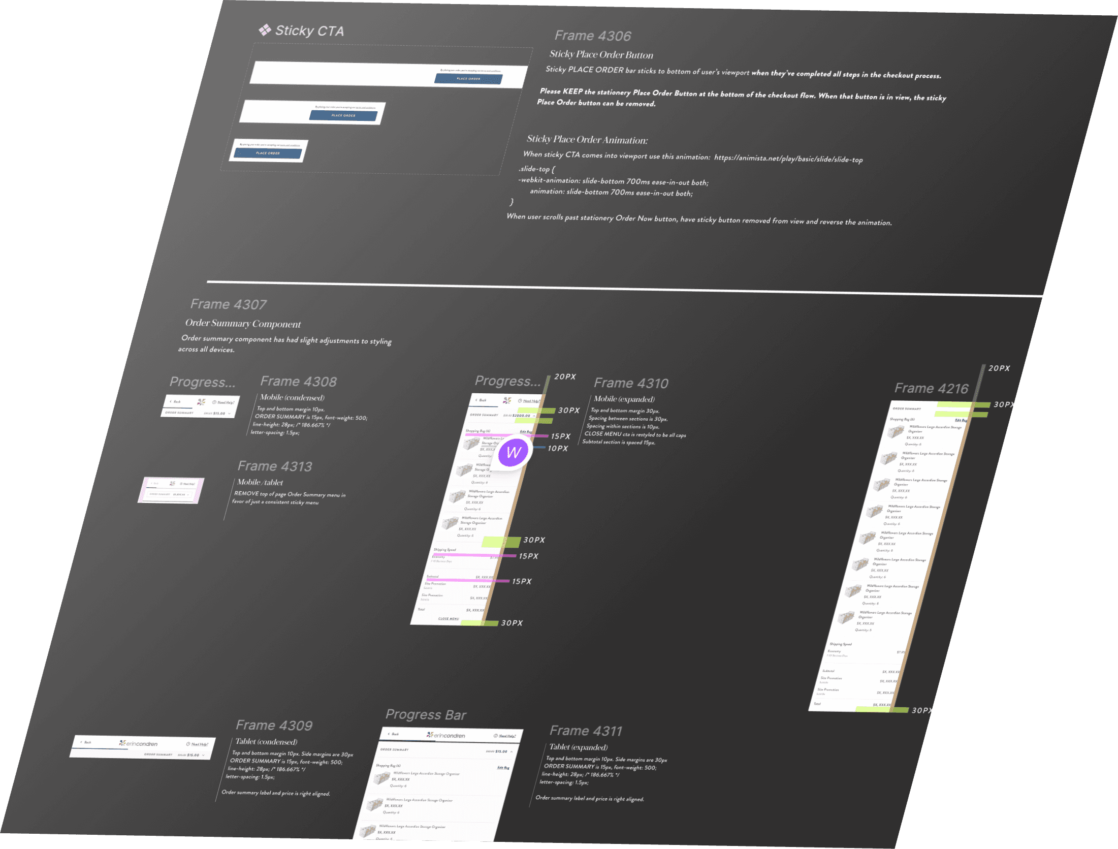 Initially, I approached the new checkout UI with stylized design elements: cards, drop shadows, and clear boundaries.