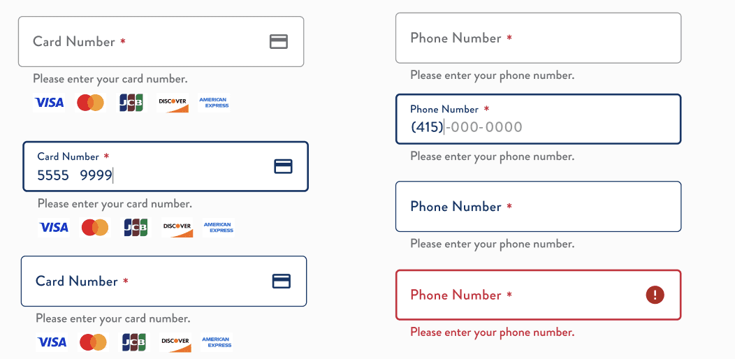 Text fields and CTA's lacked masked fields, interactive states, and sufficient contrast to be properly accessible. Touch targets were especially small.