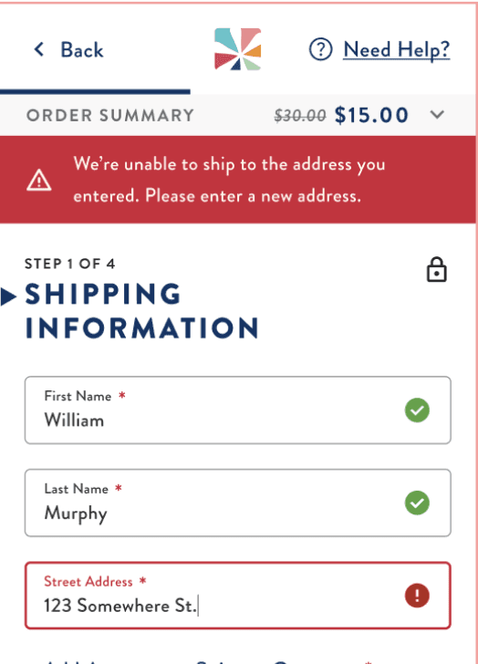 30 days post launch we saw a bit of a dip in conversion compared to our old experience, specifically around our Shipping step. I had to quickly assess what wasn't working and make some strategic UI updates based on data: